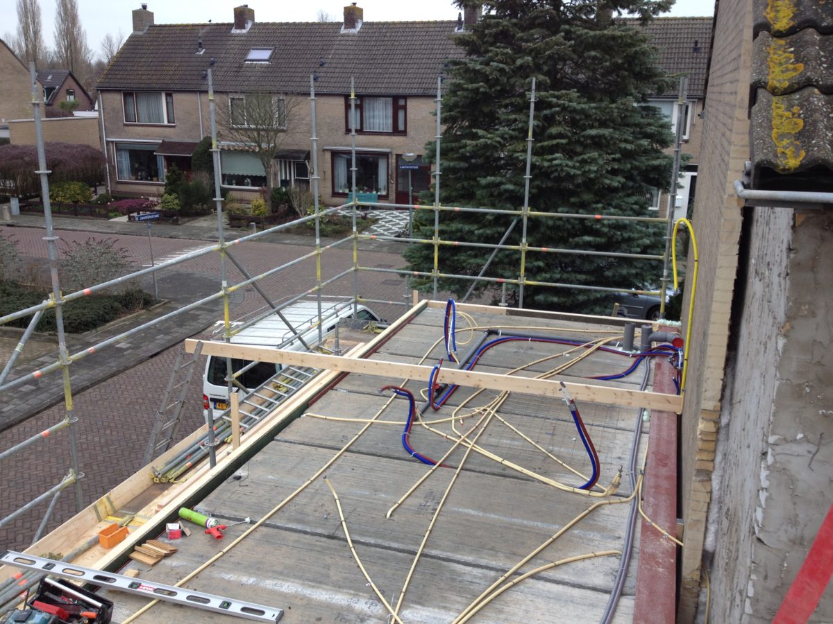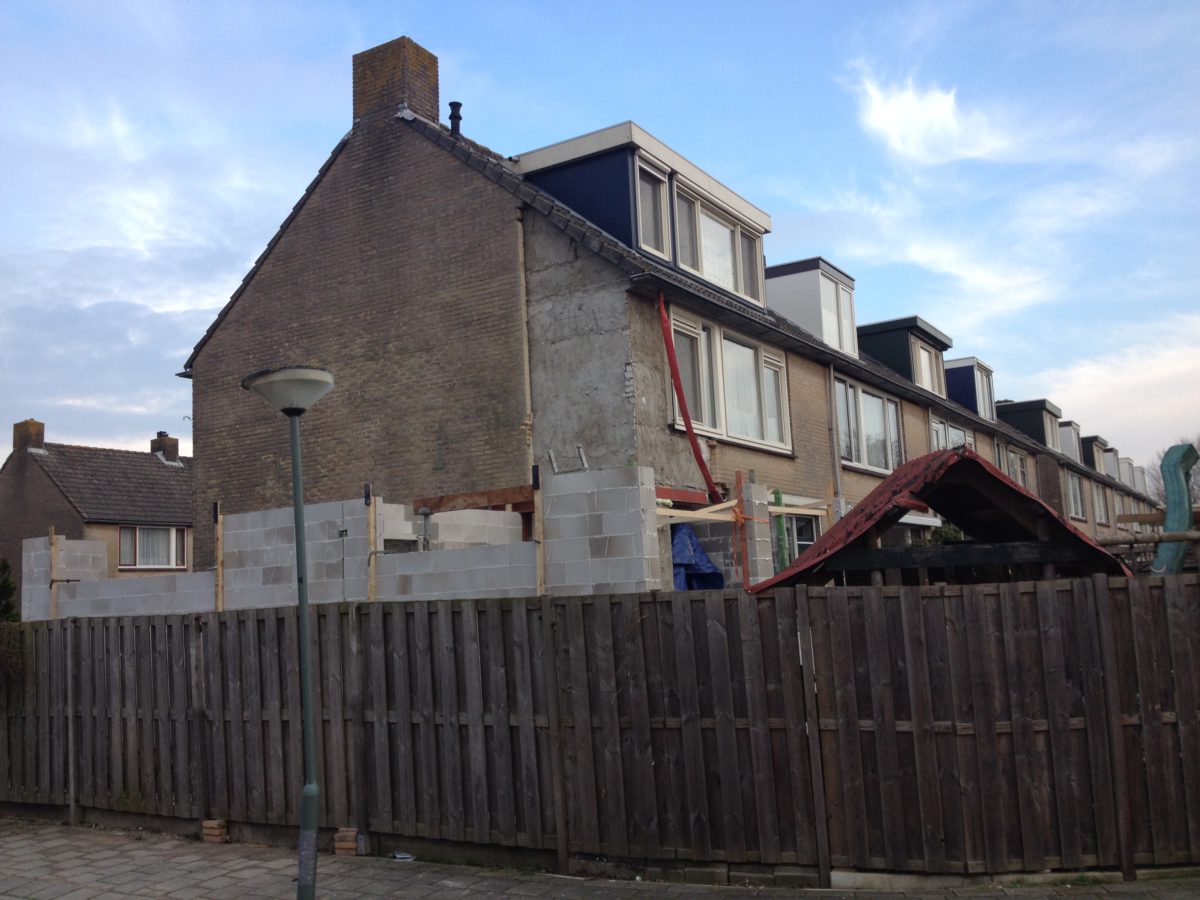 Aanbouw van de woning, met daarop een dakopbouw te Dordrecht. Getekend door bureau 3BM.
