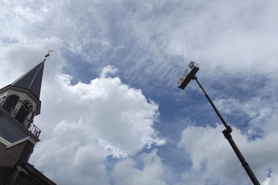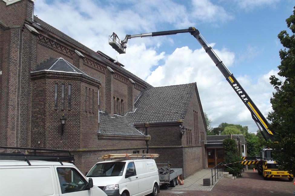 Totaalrenovatie van het dakwerk van de Grote Kerk te Papendrecht, waarbij het dakbeschot, de pannen en het loodwerk werd vervangen.
