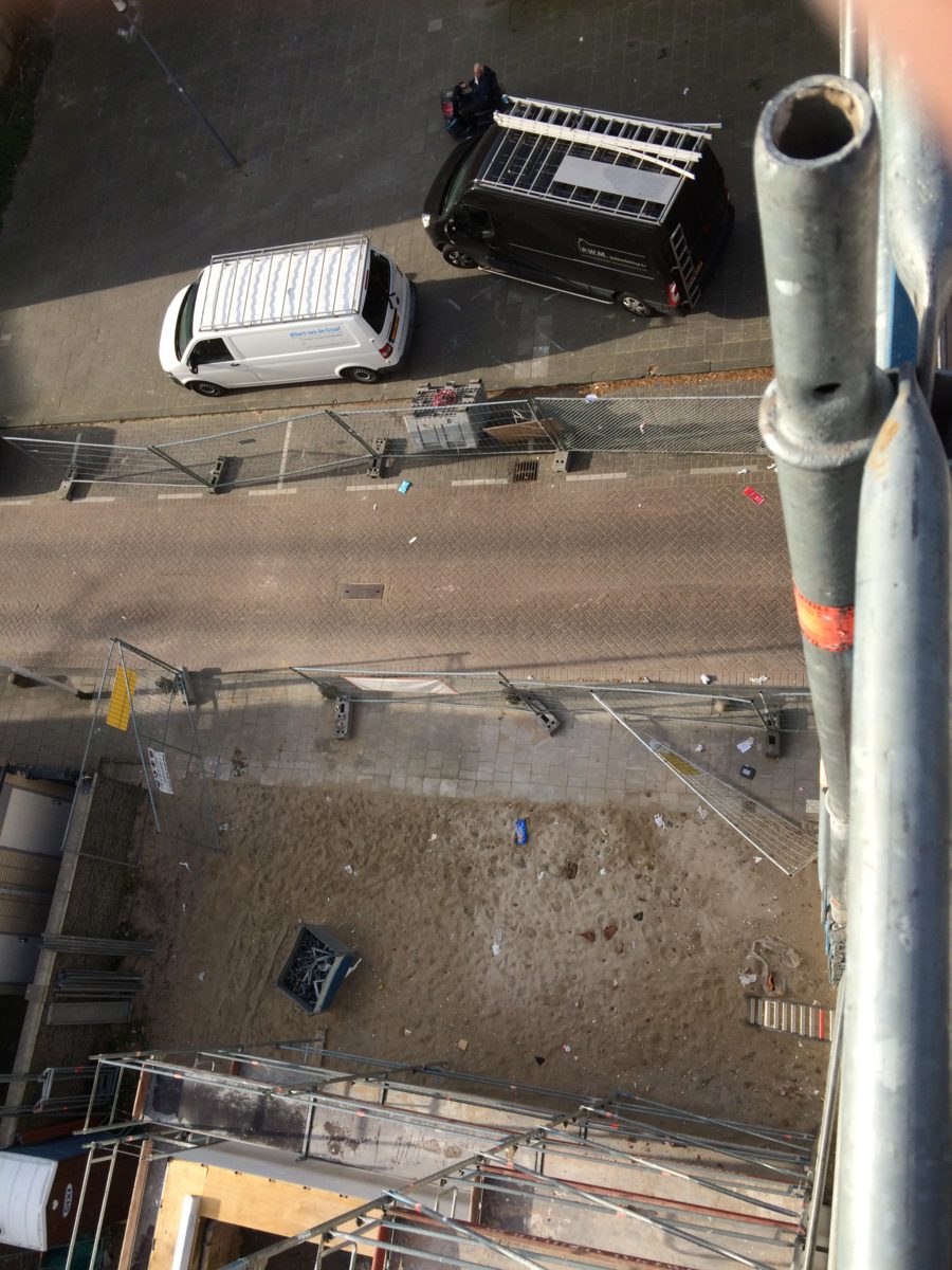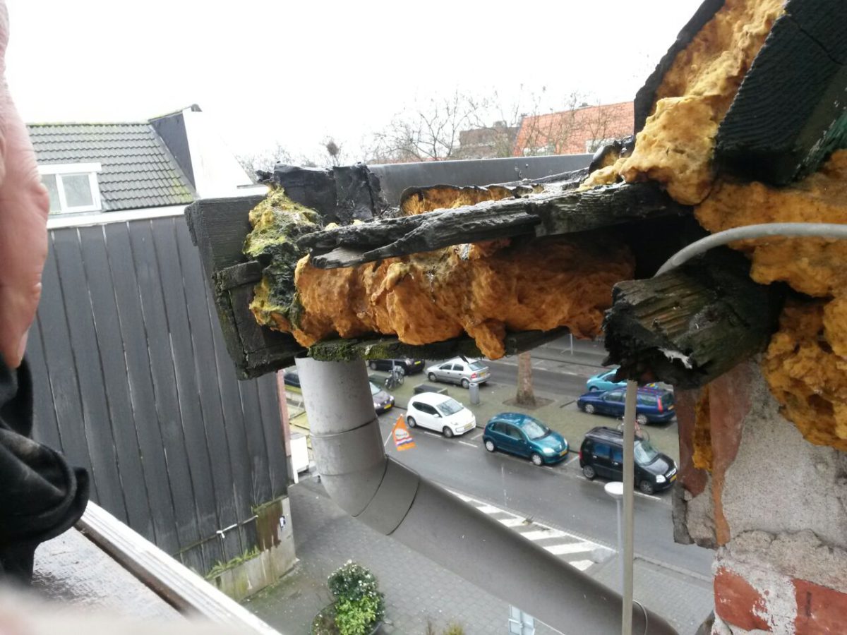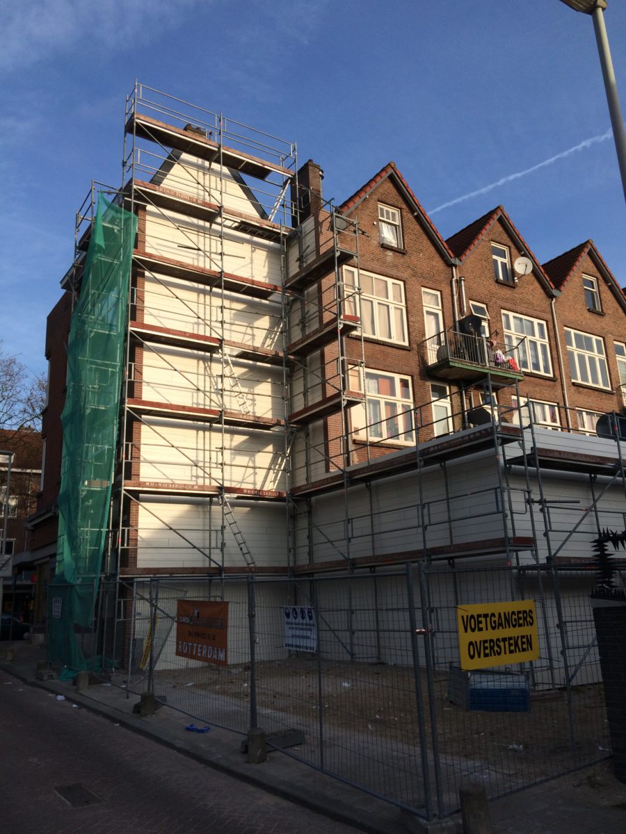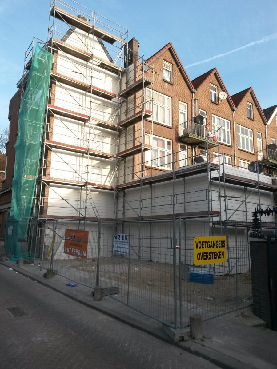 In opdracht van G. Hol Sloopwerken gevelbekleding aangebracht, na de sloop van de aanliggende woning.