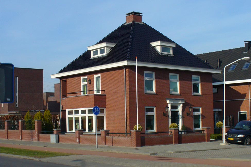 Nieuwbouw van een ruime, losstaande woning in jaren 30-stijl, ontworpen door Bongers Architecten, in de Oostpolder te Papendrecht. Met kenmerkende, autenthieke jaren 30-stijl details, zoals brede goten, een hoge schoorsteen, flauwe kap en glas-in-lood details.