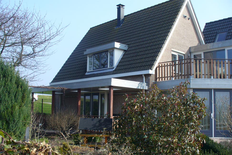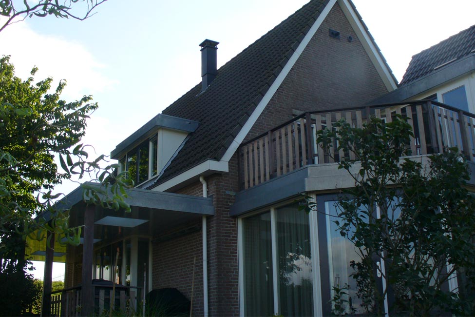 Grote verbouwing aan een woning in Ridderkerk met een dakopbouw voor een luxe sauna op de bestaande garage. Daarnaast werden dakkapellen, een aanbouw gerealiseerd, luifels en dakterrassen gerealiseerd. Alles in de zelfde stijl met de zinken, trapsgewijs, dakrand en houten ballusters, ontworpen door een architect. Albert van de Graaf verzorgde de gehele verbouwing inclusief het technische aspecten van de sauna.